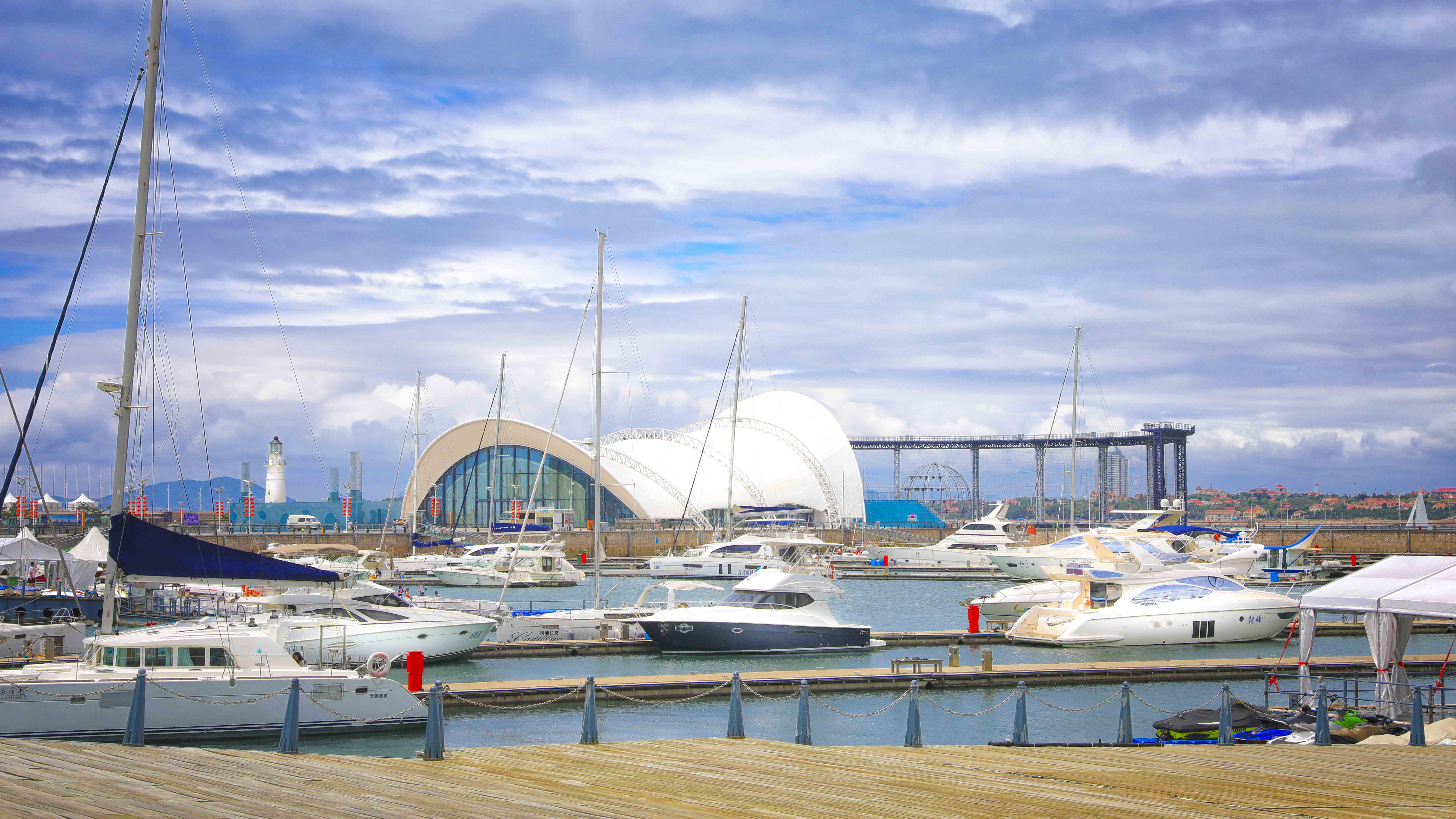 本項目在保留原有建筑主體結(jié)構(gòu)的基礎上,結(jié)合本次會議活動的相關需求,對其規(guī)模、形象、功能進行改造提升。主題材料采用輕盈的鋼結(jié)構(gòu)與膜結(jié)構(gòu),造型宛如海浪中靈動的風帆,彰顯青島這座海洋名稱、帆船之都的獨特魅力。