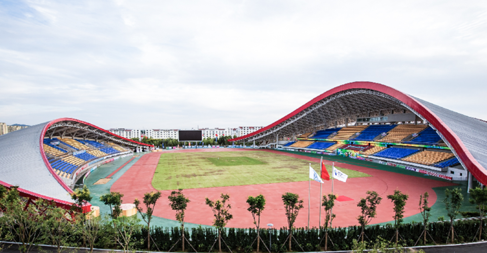 幕式而建,由一座一萬人左右的體育場和一座3500 人左右的體育館組成。兩棟建筑之間為