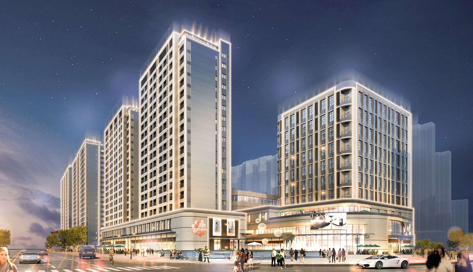 立面打造可識(shí)別性的“社區(qū)”建筑語匯,在周邊版塊中做到脫穎而出。建筑風(fēng)格莊重精美,通過運(yùn)用傳統(tǒng)美學(xué)法則來使現(xiàn)代的材料與結(jié)構(gòu)產(chǎn)生規(guī)整、端莊、典雅的安定感。商業(yè)立面通過將具有力量感的矩形石材墻面和玻璃幕墻進(jìn)行體塊穿插與虛實(shí)結(jié)合。勾勒出與住宅風(fēng)格一致的現(xiàn)代,簡約,富有商業(yè)氣息的造型。同時(shí),創(chuàng)造出豐富的露臺(tái)空間與立面層次,完美的樹立了本項(xiàng)目的沿街形象。