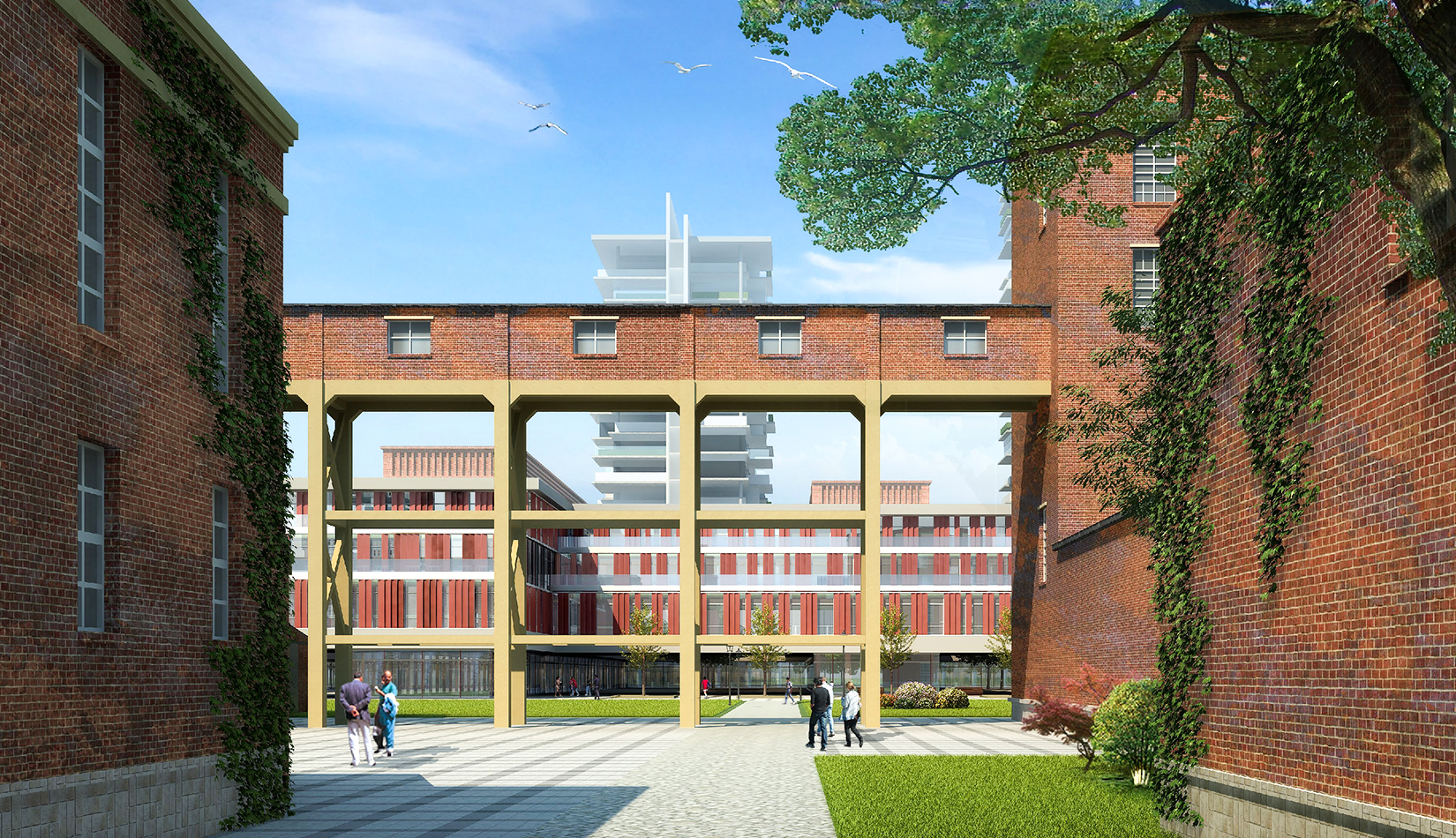 利用原有廠房中具有代表性的部分作為重要的展示節(jié)點,形成具有標(biāo)志性的工業(yè)遺跡風(fēng)貌,與新建建筑的現(xiàn)代感相交融,打造具有時空連續(xù)性與對立性的感官體驗。